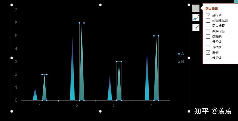 把图表设置成三角的:先绘制一个三角形并设置好颜色ctr+c,然后选中图标中的圆柱,ctr+v就替换成三角形了把图标设置细:设置系列重叠和间隙宽度设置一些数据不可见设置使得数据对比更强烈:可以设置坐标数值的最小值从哪个开始