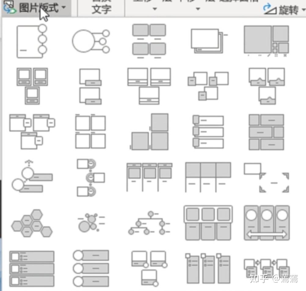 框选多个图片—>图片格式—>图片版式,可以把多张图片设置成smart